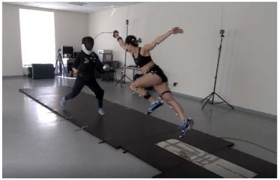 Coach observations and statistical analysis derived from high-rank tournaments demonstrate a new tendency that emerges in épée technique. Increasingly, fencers involved in a bout decide to employ the flèche instead of the lunge as the basic technique of fencing footwork. To date, fencing tactics focused on the adequate performance of a lunge, which is considered a safer solution. For example, in the latter, a riposte can be avoided if the attack is parried [1]. In the case of a failure during an attack, the fencer who initiated it has minimal chance of an effective defense in the event of an opponent’s counterattack. In the first Olympic Games in Athens in 1896, we had to deal with more static forms of footwork in fencing, such as steps, leaps towards the opponents, and the lunge itself. It was not until the 1930s that the flèche was introduced by Hungarian fencers and formed an innovative, dynamic solution in the attacks performed on a fencing strip leading to a touch [2]. For this reason, research in the field of biomechanics and motor control often applied the lunge as a diagnostic procedure in the area of comprehensive analysis [3,4,5]. Both touch techniques are fundamentally different in terms of the technique that is followed. The common point is associated with the commencement of the attack with the dominant arm holding the weapon by activating the muscles of the arm and forearm [6].