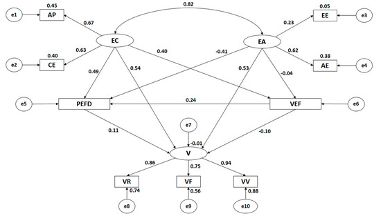 | PEFD | ← | VEF | 0.271 | 0.026 | 10.318 | *** | 0.236 |
