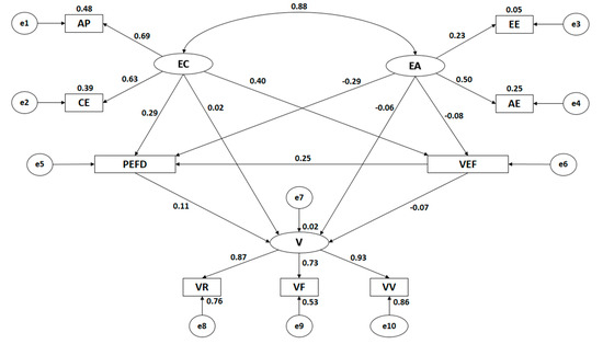 | VEF | ← | EC | 0.667 | 0.196 | 3.400 | *** | 0.403 |