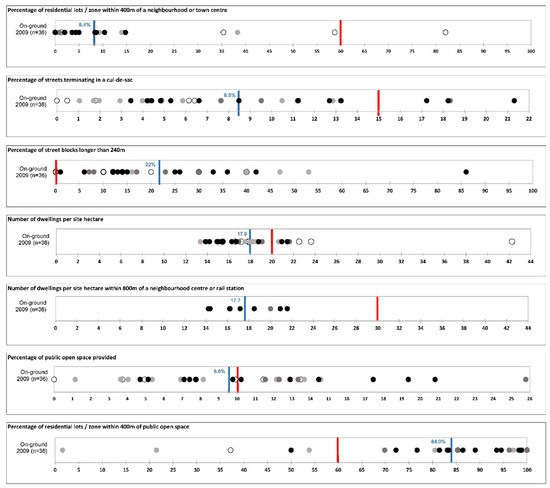 Whilst the LN was highly regarded internationally as an effective local interpretation of New Urbanism, and despite the (then) Minister for Planning stating, in his foreword of the 2000 (second) edition of the guidelines, that “the ability to measure their on-ground performance will further refine the policy” [26], by 2003 there had been no formal evaluation of the policy. Therefore, in addition to assessing the health and wellbeing outcomes of the LN policy, a key interest of the policy partners within the Department was the assessment of which aspects of the policy were (or were not) being implemented and were (or were not) most effective. Upon the commencement of the review of the LN policy in 2013, and as a consequence of the ongoing collaboration and communication with the Department of Planning, there was, therefore, considerable interest in identifying which, if any, of the multitude of design features addressed in the policy were the ‘key performance indicators or “non-negotiable” requirements for enhancing health’.