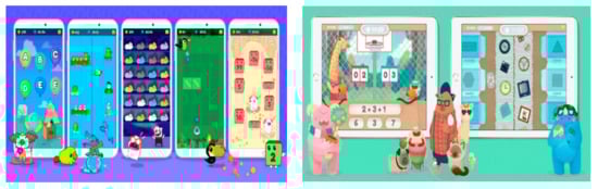 Each tool is made up of different games which pose a challenge (solving a problem) to the player. Depending on the skills or abilities required to solve the problem one (primary) intelligence or various (secondary) intelligences will be activated. Figure 1 shows selected screenshots of Cuibrain and Boogies Academy for smartphone and tablet.