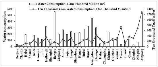 The average value of water consumption and water intensity in each province of mainland China from 2004 to 2017.
