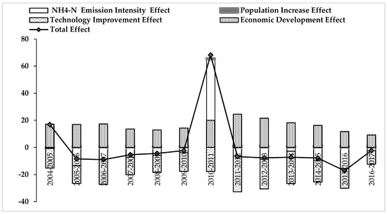 The decomposition analysis results of NH4-N emission effects in mainland China from 2004 to 2017.