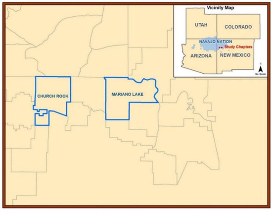 Map of study area in Northern New Mexico: Churchrock and Mariano Lake Chapter Communities of Diné Lands.