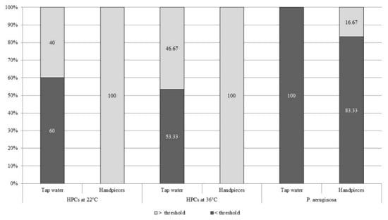 Similarly, we determined the percentage of water samples from hand-pieces that were above/below the target levels of the above-mentioned parameters (Figure 1).