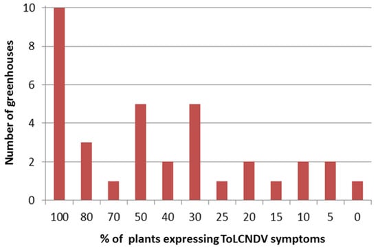 Greenhouse frequency distribution of ToLCNDV-symptomatic plants.