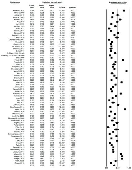 We utilized the software Comprehensive Meta-Analysis (CMA) Version 2.0 (Biostat, Inc., Englewood, NJ, USA) to perform the statistical analyses. Before statistical analysis was carried out, we randomized all articles by blinding the title of the articles and the names of the authors and the journal. The selected studies reported the dichotomous variable of anxiety being present or absent in medical students based on the study authors’ defined cut off score for the selected screening instruments. Using the random-effects model, we then calculated the aggregate prevalence of anxiety, the corresponding p-value and 95% confidence interval (CI), the Cochran’s Q-statistic and its p-value. We used the random-effects model due to the expected heterogeneity across the studies and also because it considers subject-specific effects [20,21]. We used the I2 value to assess heterogeneity among studies. When significant heterogeneity was identified, we ran a meta-regression using the random-effects model to study the impact of moderator variables on the prevalence of anxiety in medical students. For studies comparing medical students with non-medical students, we calculated the summary odds ratio (OR) and reported the corresponding p-value, 95% CI and Z-value. Statistical tests were two-tailed, and we set the level of significance at 5%. We evaluated publication bias using the Egger’s regression method [22]. If significant publication bias was present, we would perform the classic fail-safe test to determine the number of missing studies required for the p-value of publication bias among the observed studies to approximate > 0.05.