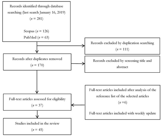As reported in Figure 1, a total of 126, 63, and 92 papers were found using Scopus, PubMed, and ISI Web of Knowledge, respectively. All papers (N = 281) were independently reviewed by two of the authors who selected the papers that were relevant for the review purposes in accordance with the inclusion criteria.