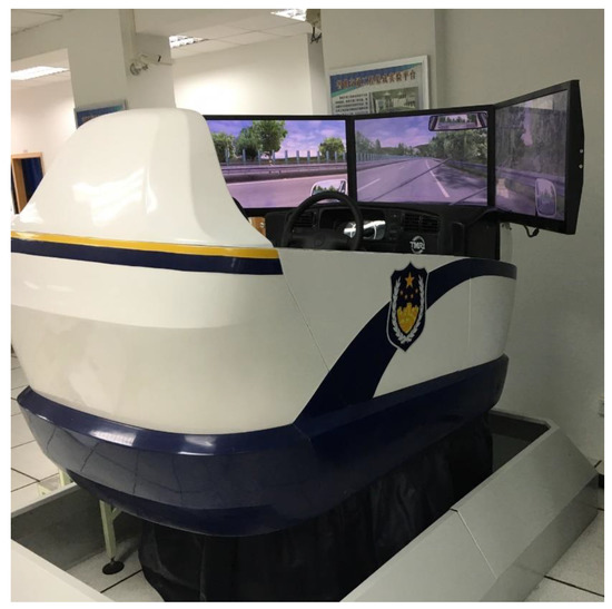 The simulated driving experiments were carried out using a fix-based driving simulator in the South China University of Technology (as shown in Figure 1). The system could provide a 210° horizontal view. Sensors were installed in the steering wheel, accelerator, and brake pedal to capture the information on driving performance, including the steering angle, acceleration, and braking time and force. For the physiological performance, a mobile and mountable sensor—BIOPACTM MP36R 4-Channel System (UPWARDS TEKSYSTEMS, Ltd., Beijing, China)—was applied to record the metrics, including heart rate, at a frequency of 10,000 Hz.