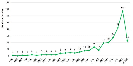 Specifically, we began by setting the query string to “TITLE-ABS-KEY (“theory of planned behavior” OR “theory of planned behavior”)”, and the search time was 16 March 2019 (article publication time was unlimited). Second, the source type was limited to journal articles because they have undergone rigorous peer review and are more reliable than conference papers and other types of documents. Third, the subject area was limited to "Environmental Science", as identified and classified by Scopus. It must be explained that all the documents in Scopus are divided into 27 major subject areas according to their research content, and one of these subjects is environmental science. Furthermore, the subject of environmental science in Scopus covers 13 subfields, including ecological modeling; ecology; environmental chemistry; environmental engineering; environmental science (miscellaneous); general environmental science; global and planetary change; health, toxicology and mutagenesis; management, monitoring, policy, and law; nature and landscape conservation; pollution, waste management and disposal; and water science and technology. Therefore, the search scope of this study basically covers the field of environmental science. Finally, a manual examination was performed to eliminate irrelevant literature, and several papers were excluded due to a lack of correlation. As a result, a total of 531 relevant article records from 1995 to 2019 were exported for further statistical analysis. Each record contained authors, country/region, article title, year, source title, citation count, abstract, author keywords, index keywords, and references.