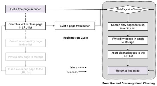Motivated by the above observation, we enhance the current buffer reclamation scheme of SQLite such that it can proactively perform the cleaning of dirty pages in an efficient manner and thus prevent extreme increases in latency because of undesired thrashing.