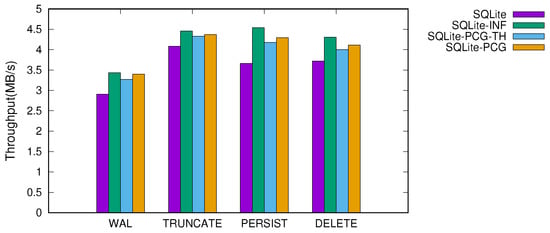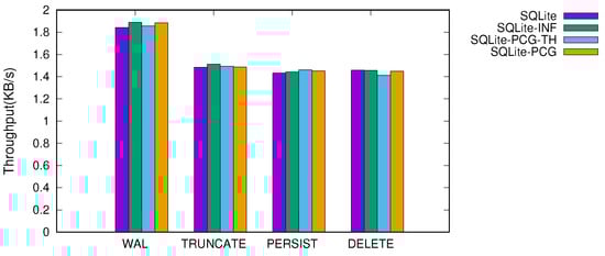 There are some studies that have improved SQLite performance through the storage interface refactoring. Min et al. optimized the FTL(Flash Translation Layer) controller of an SSD such that it supports atomic updating of a series of data within the SSD []. By exporting this feature as a storage interface, they enabled SQLite to provide transactional writes without write-twice logging. A study by Yeon et al. also presented a new storage interface that individually synchronizes transactions generated by database systems such as SQLite so as to isolate the performance penalty of each transaction from the others [].
