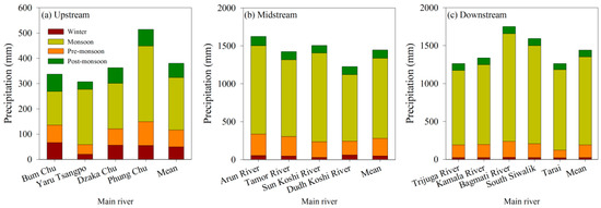 Precipitation from different rivers in Koshi River Basin (KRB).