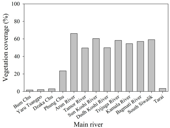Vegetation coverage from different rivers in the Koshi River Basin (KRB).