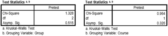 Kruskal–Wallis test. Grouping variable: Group and Course.