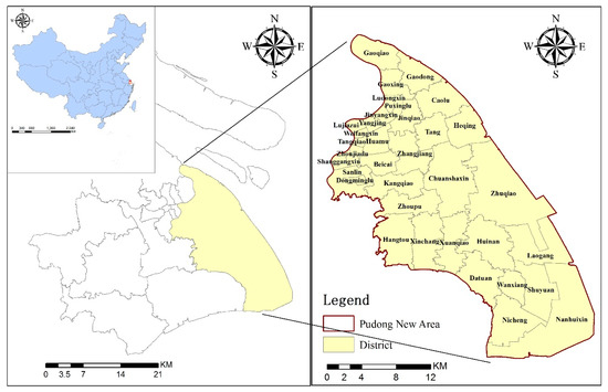 Figure 1. Regional location of the Pudong New Area (PNA) of Shanghai.