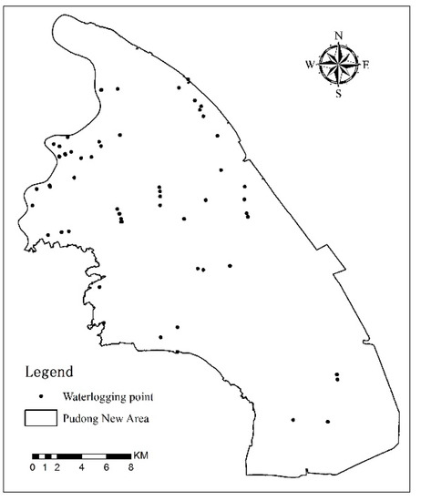 Figure 3. Distribution of the waterlogging points in the Pudong New Area.