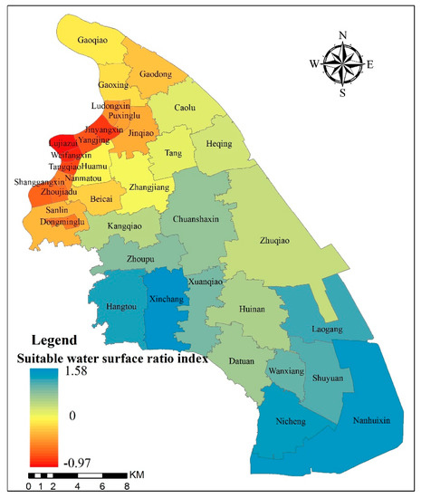 Figure 5. Suitable water surface ratio index of the Pudong New Area.