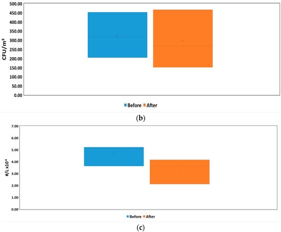 | Microorganism | Before (CFU/m3) | After (CFU/m3) | Total | ||||