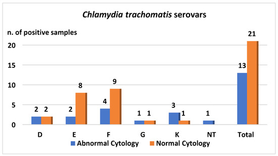 Figure 2. Chlamydia trachomatis (Ct) serovar distribution based on cervical cytology result.