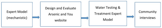 We describe an iterative process of research and communication that was combined to learn about the most important components of understanding perceptions of arsenic exposure through food and water. It was also designed to better understand the barriers to communication by comparing “expert models” of how a system works with community-level understanding. Figure 1 shows the flow of the steps in our risk communication research process, and will be referenced throughout the paper. Essentially, we used this four-step process to collect information on expert knowledge, then used these insights to inform a website for public health and environmental risk communication. Simultaneously, we have also been trying to understand layperson perceptions of risk to then compare with expert understanding and better inform future communication efforts.