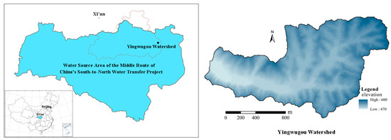 The study area is located in Yingwugou watershed in Shangnan County, Shanxi Province, China and covers an area of 1.87 km2, which is in the water source area of the middle route of the South-to–North Water Diversion Project (see Figure 1). The water diversion project seeks to promote Northern China’s economic growth by relaxing water constraints in a region now facing severe water shortage. The watershed was selected as: (1) it is the region with the most serious soil erosion in the whole water source area; (2) the climatic and landscape of the watershed reflect the general characteristics of this water source area; (3) the soil and slope conditions in this watershed are suitable for growing local crops, e.g., peanut, corn, and soybean. We performed the experiments under different crop types and tillage measures. The climate of the studied area is of typical Monsoon-influenced humid subtropical climate. The watershed has a mean annual temperature of 14 °C and a mean annual precipitation of 803.2 mm. The seasonal distribution of precipitation is highly uneven throughout the year with more than 60% of the annual precipitation occurs in wet seasons (from June to September). The primary landform type of the watershed is the rocky mountain and the elevation ranges from 470 m to 600 m above sea level (a.s.l.). The soil type of the watershed is dominated by yellow-brown soil and sandy loam, and the thickness of the soil layer ranges from 20–70 cm. Slope land is an important source of food and cash crops in the study watershed due to a small number of flatlands. Common food and cash crops include corn, peanuts, soybeans, and tea trees.