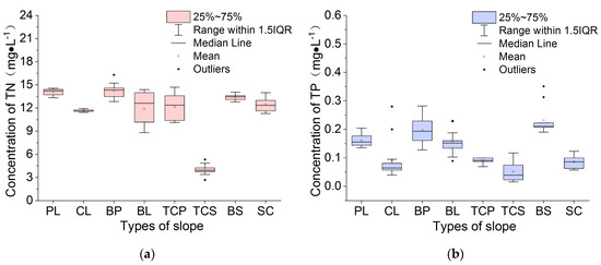 The average concentration of TN (a) and TP (b) with different slope treatments.