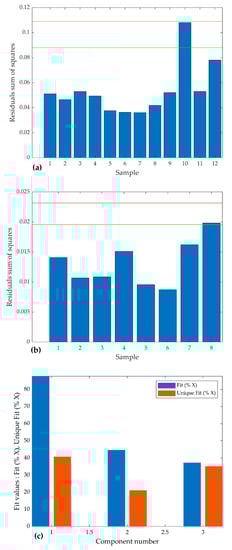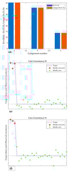 - Bro, R.; Kiers, H.A.L. A new efficient method for determining the number of components in PARAFAC models. J. Chemom. 2003, 17, 274–286. [Google Scholar] [CrossRef]