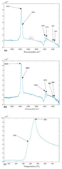 - Akinade, K.A.; Campbell, R.M.; Compton, D.A.C. The use of a simultaneous T G A / D S C / F T - I R system as a problem-solving tool. J. Mater. Sci. 1994, 29, 3802–3812. [Google Scholar] [CrossRef]