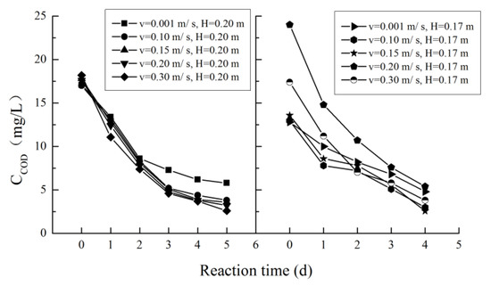 Variation in the chemical oxygen demand (COD) concentration under different hydraulic conditions.