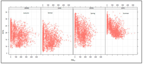 10 concentrations started to decrease at almost the same temperature of about 20 °C in all seasons. The minimum temperatures for summer were around 15 °C, with maximum temperatures reaching up to 36 °C.