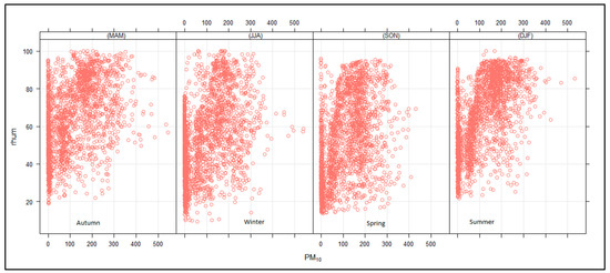 10 concentrations increased with increasing humidity, particularly during autumn and summer. During winter and spring, there were high PM
