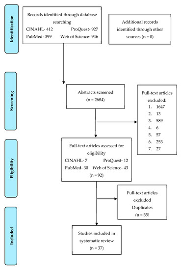 | Search Strategy | CINAHL Identified/Included | ProQuest Identified/Included | PubMed Identified/Included | Web of Science Identified/Included |