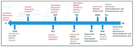 - Moschet, C.; Lew, B.M.; Hasenbein, S.; Anumol, T.; Young, T.M. LC- and GC-QTOF-MS as Complementary Tools for a Comprehensive Micropollutant Analysis in Aquatic Systems. Environ. Sci. Technol. 2017, 51, 1553–1561. [Google Scholar] [CrossRef] [PubMed]
