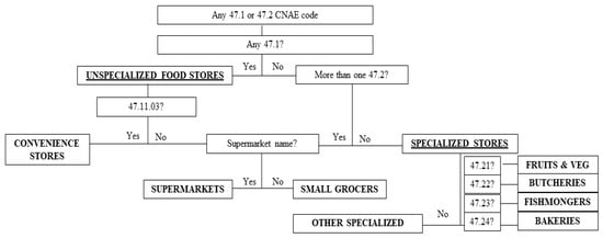 | Supermarkets | Full-line, self-service food outlets that allow the supply of a wide variety of products of daily consumption, food and non-food, without the intermediation of a person employed to serve the buyers (unless requested). This category includes both large chain, small and discount supermarkets. |