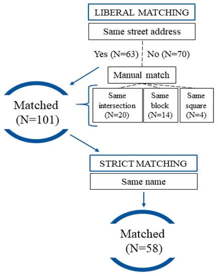 - Clary, C.M.; Kestens, Y. Field validation of secondary data sources: A novel measure of representativity applied to a Canadian food outlet database. Int. J. Behav. Nutr. Phys. Act. 2013, 10, 77–86. [Google Scholar] [PubMed]