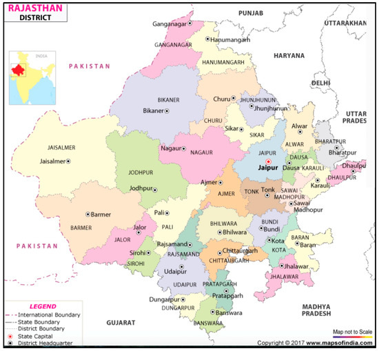 Regional map of Rajasthan and location of Jaipur (Maps of India, 2018).