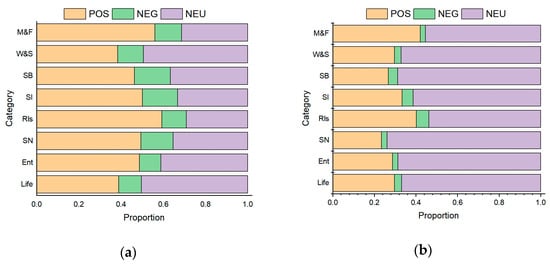 Sentiment distribution of (a) Chinese and (b) English topic data.