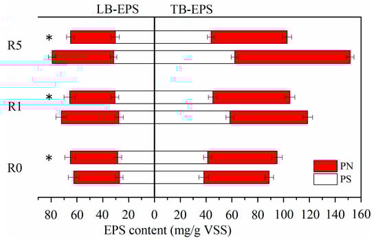 The LB-EPS and TB-EPS concentrations were analyzed to determine the PS and PN concentrations. Zheng et al. described the method used to analyze the soluble PS and PN concentrations in EPS [25].