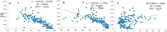 The optimal parameter combination was determined by observing the relationship between each parameter setting and the optimization rate and iteration number. The setting of the volatilization factor is the most important parameter of ACO. When the volatilization factor is too small, the pheromone volatilizes slowly, resulting in a small difference in the pheromone concentration of the different paths, and making it difficult for ants to approach the optimal path. It takes many trials to obtain the best result by traversing. In contrast, if the volatilization factor is too large, the algorithm will easily fall into local optimization. Figure 4a shows the relationship between the volatilization factor, optimization rate, and iteration number. The volatilization factor has a great influence on the optimization rate and iteration number. When the volatilization factor is 0.1, the optimization rate is the highest, but the number of iterations also reaches the largest. When the volatilization factor is 0.9, the optimization rate and iteration number show an opposite trend, and both are small values. Therefore, when setting the volatilization factor, ACO usually tends to select the median value. Considering the optimization rate and iteration number obtained by the experiment, when the volatilization factor is set as 0.4, the optimization rate is close to the optimal value, and the iteration number is the lowest. Therefore, the volatilization factor is set as 0.4 in this study.