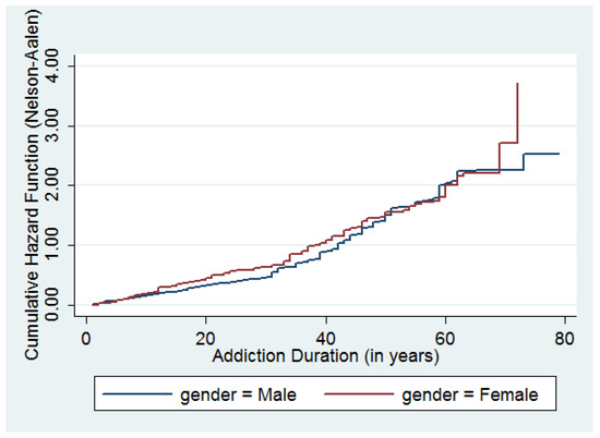 Cumulative hazard of quitting a tobacco addiction. Source: Authors’ calculations.