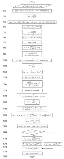 The SED received by the sloped surface can be calculated with the Equation (8):