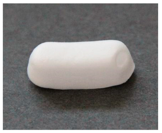 The tested medical device. The size of the medical device is 2 × 0.5 cm on the widest site. The sponge like structure allows to perform the device according to the specific shape of the socket.