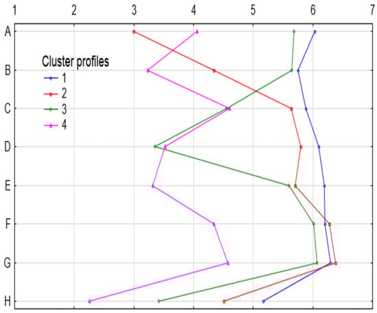 Among the consumers using University canteen services, based on the answers, 4 profiles were selected to summarize the behaviors of 4 consumer clusters - canteen usage profiles (Figure 1):
