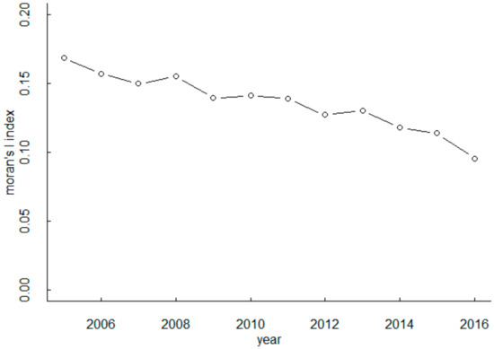 China’s 2005–2016 carbon emissions Moran’s I index.