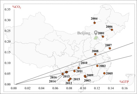 In order to identify the relationship between the carbon emission and economic growth of the transport sector, on the basis of data availability, the Tapio decoupling analysis was performed in 2000–2016 with specific analyses in these four municipalities.