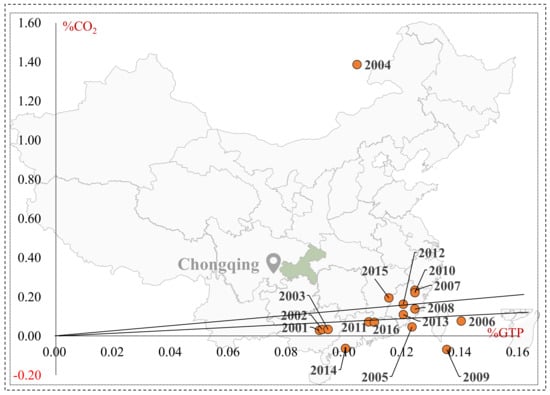 Regarding the decoupling relationship between transport’s carbon emissions and economic growth, Beijing, Shanghai, and Tianjin all improved a lot. Beijing stabilized in a weak decoupling state, while Shanghai and Tianjin appeared to have the trend of strong decoupling. According to the study by Jiang et al. [], China’s transport sector was dominated by expansive coupling, which indicated that transport sectors of Beijing, Shanghai, and Tianjin have reached a better decoupling situation compared with the whole China. However, to our surprise, the decoupling state of the Chongqing transport sector deteriorated in 2000–2016, varying from stable weak decoupling to expansive negative decoupling and expansive coupling.