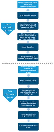 Young, H.M.L.; Goodliffe, S.; Madhani, M.; Phelps, K.; Regen, E.; Locke, A.; Burton, J.O.; Singh, S.J.; Smith, A.C.; Conroy, S. Co-producing Progression Criteria for Feasibility Studies: A Partnership between Patient Contributors, Clinicians and Researchers. Int. J. Environ. Res. Public Health 2019, 16, 3756. https://doi.org/10.3390/ijerph16193756