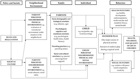 Socio-ecological model of different levels of influence on outdoor play in children (according to Sallis et al. [21]).