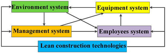 Koskela [25] first applied the lean thinking to the construction field and then put forward the concept of lean construction. Since the introduction of the Last Planner® System [26,27], lean construction has rapidly developed and shown great effects on waste reduction, process control, and project value-adding [28,29,30]. However, the impact of lean construction on safety issues is as yet in its infancy and previous studies have been theoretical or involve just one type of lean tool. The influencing mechanism of lean construction on construction safety, therefore, lacks systematic and in-depth analysis. On this basis, this study focuses on five main types of lean tools—5s management, visual management, the Last Planner® System, just-in-time management, and conference management—and investigates their impacts on improving construction safety. To address these concerns, in this study, we first developed a comprehensive model of the construction system (i.e., comprising environment, equipment, management, and employee sub-systems) through the lens of lean theories. Then, we targeted the optimization and improvement of the safety system from the perspectives of process control by providing a new perspective for improving safety management.